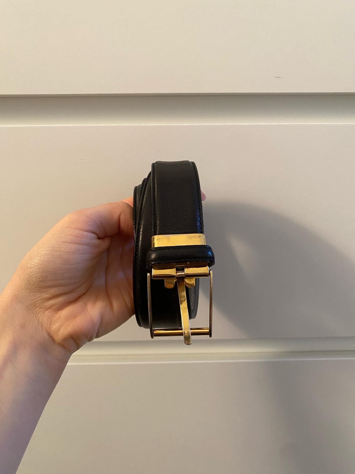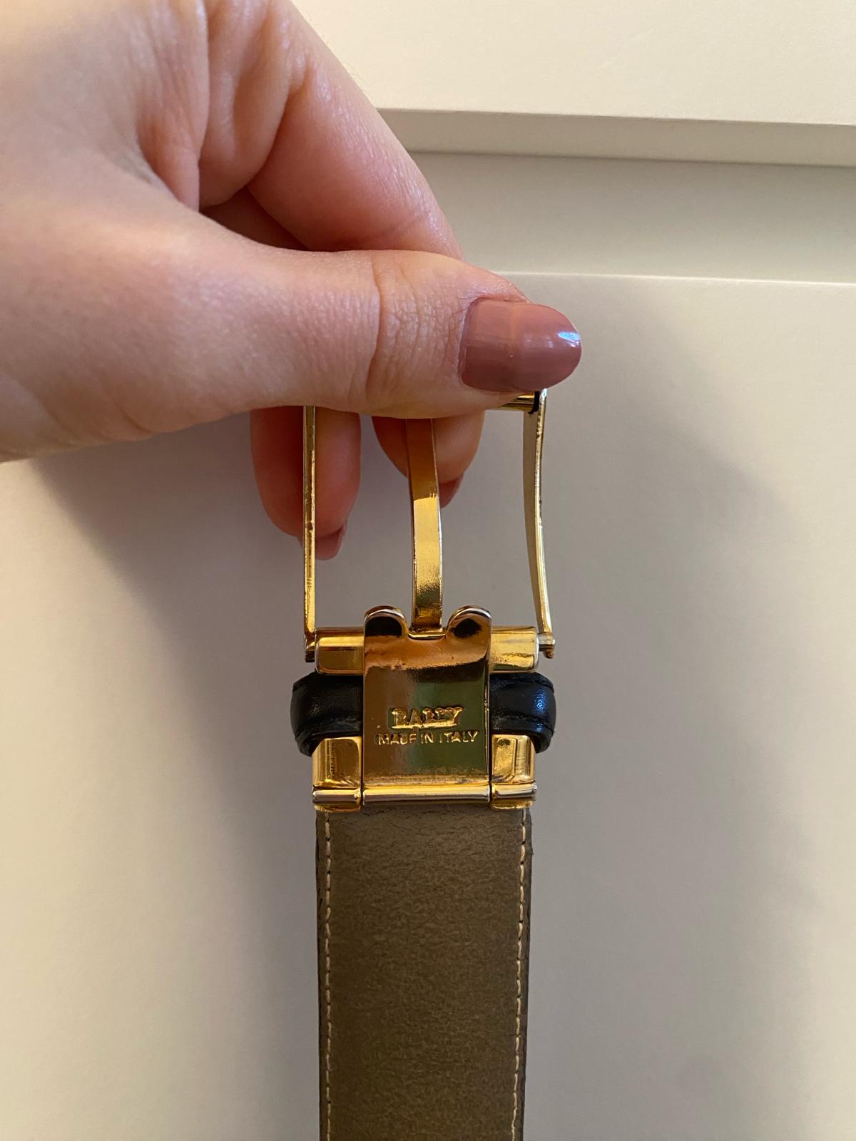 Bally leather belt, featuring a golden clasp. Minor signs of wear and tear.